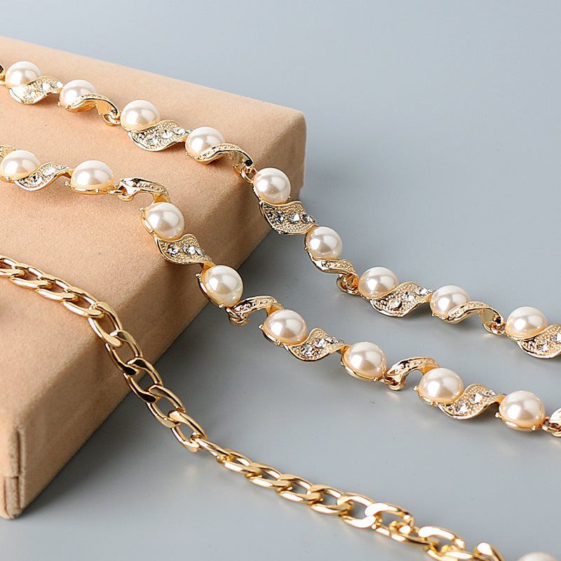 Diamond studded pearl belt for women's dress, Korean fashion versatile decoration, slim waist chain, metal chain dress