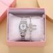 Diamond studded small dial thin strap personalized trendy steel strap quartz watch + bracelet (2pcs/set)
