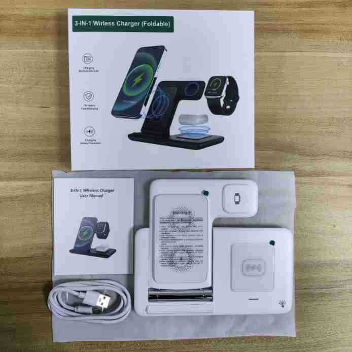 Directly suitable for Apple 15 3-in-1 wireless charging, foldable dual coil 15W fast charging
