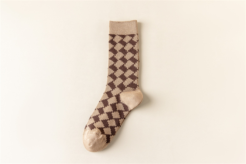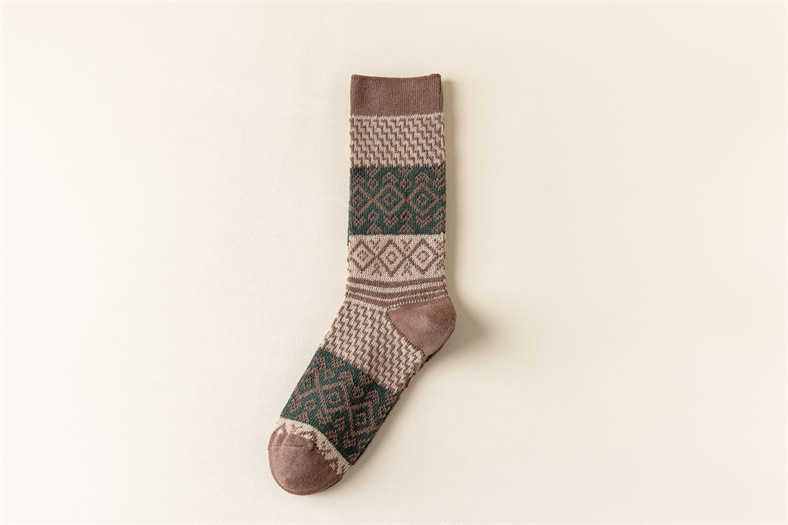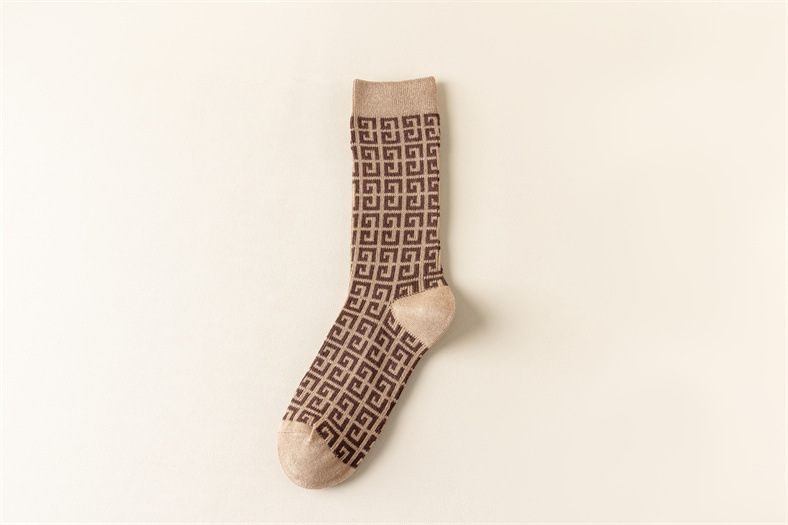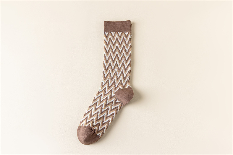 Double-needle, two-way trend, fashionable new women's pile socks, medium length, thickened khaki color wave pattern