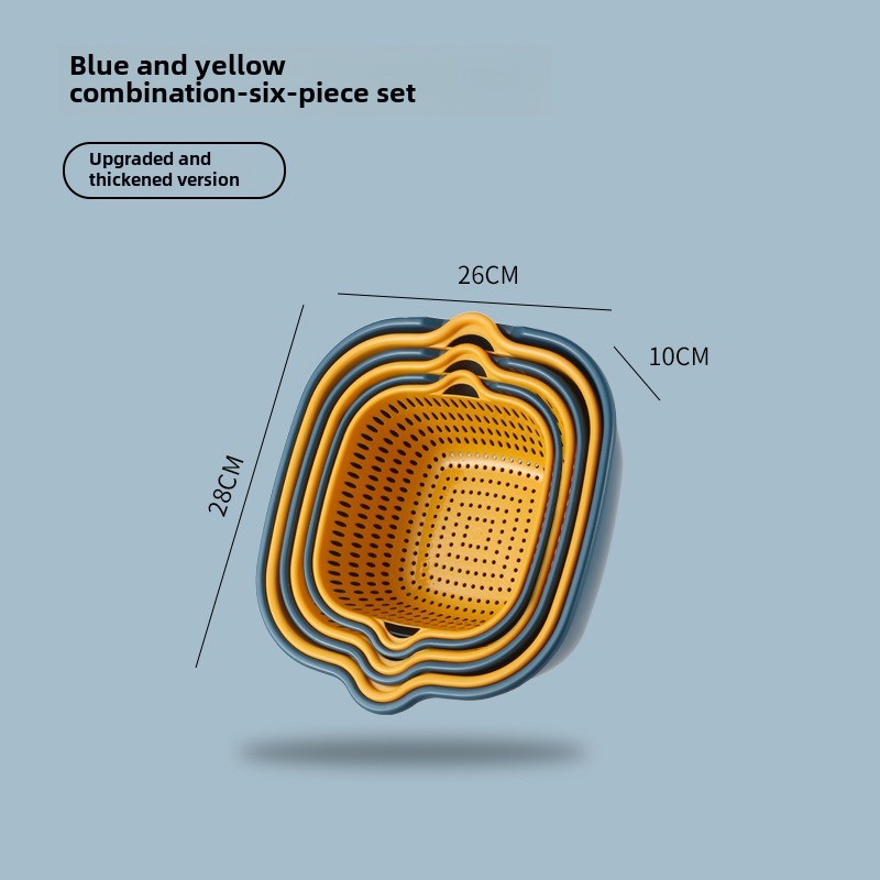 Drain basket six-piece set wholesale kitchen color matching double-layer 6-piece set household washing vegetable basket fruit