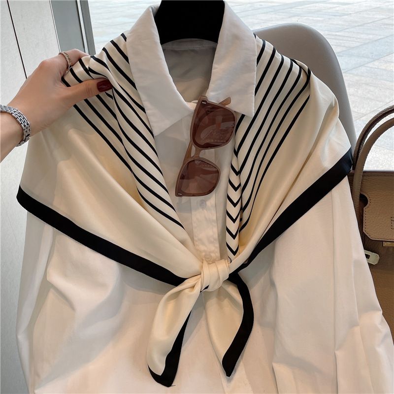Elegant Striped Scarf for Women Korean Version Versatile Imitation Silk Shawl Spring and Autumn 90 Silk Scarf Outerwear Scarf