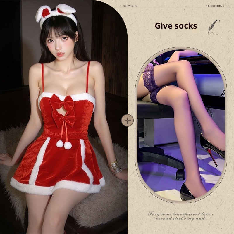 Eros Lab Night Listening Incense Christmas Battle Robe Lingerie Sexy Red Velvet Nightdress New Year Ball Role Play Pure Desire