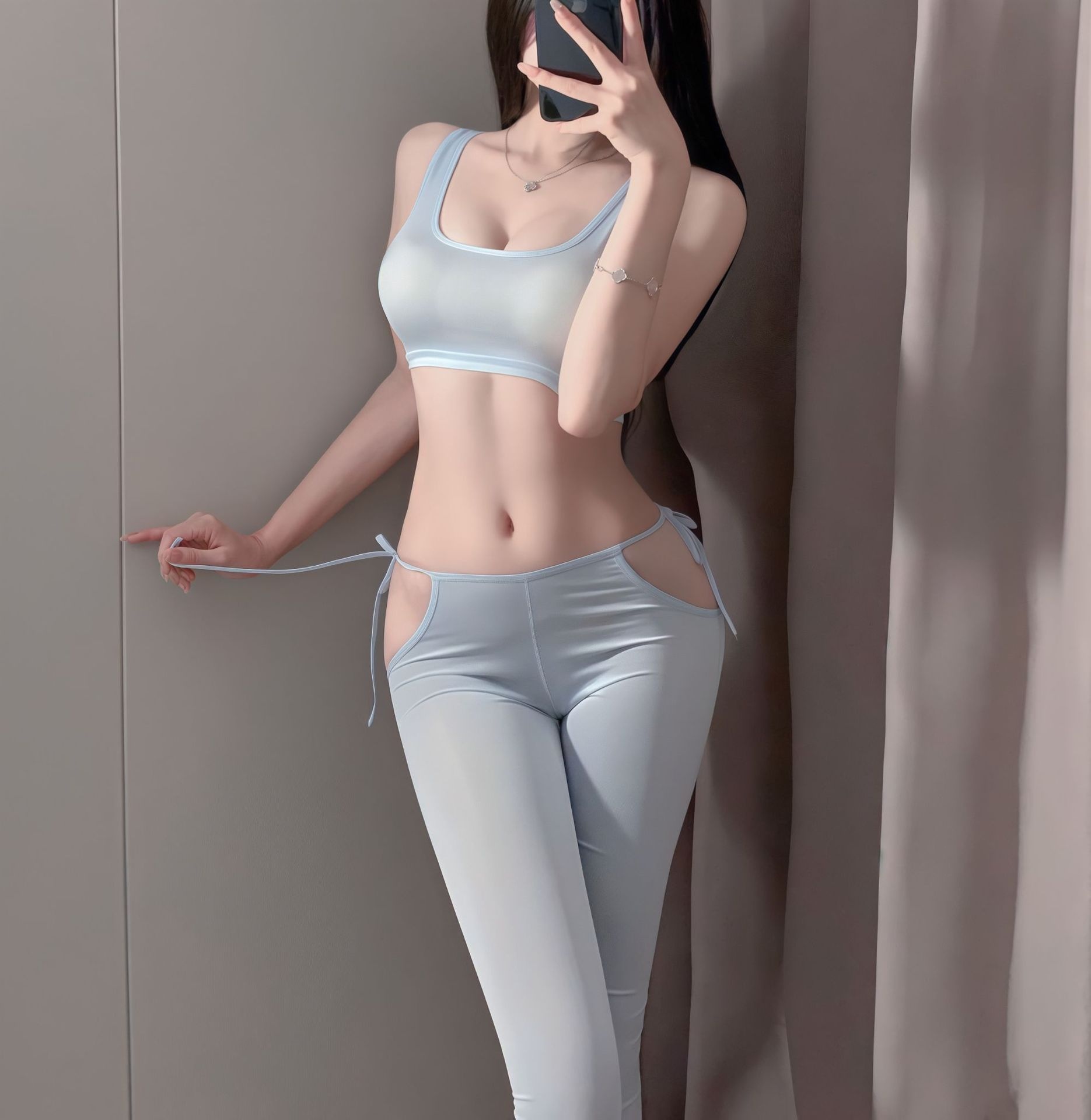Eros Lab Sexy Lingerie Thin Tight Slimming Leg Tummy Control Hip Lift Yoga Nude Feel Tranparent Silky Lace-up Skinny