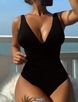European and American sexy solid color small pit stripe fabric women's casual and comfortable one piece swimsuit