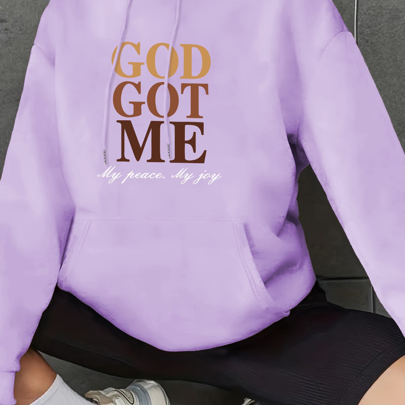 European Size Letter Print Kangaroo Pocket Hoodie, Casual Long Sleeve Drawstring Hooded Sweatshirt, Women