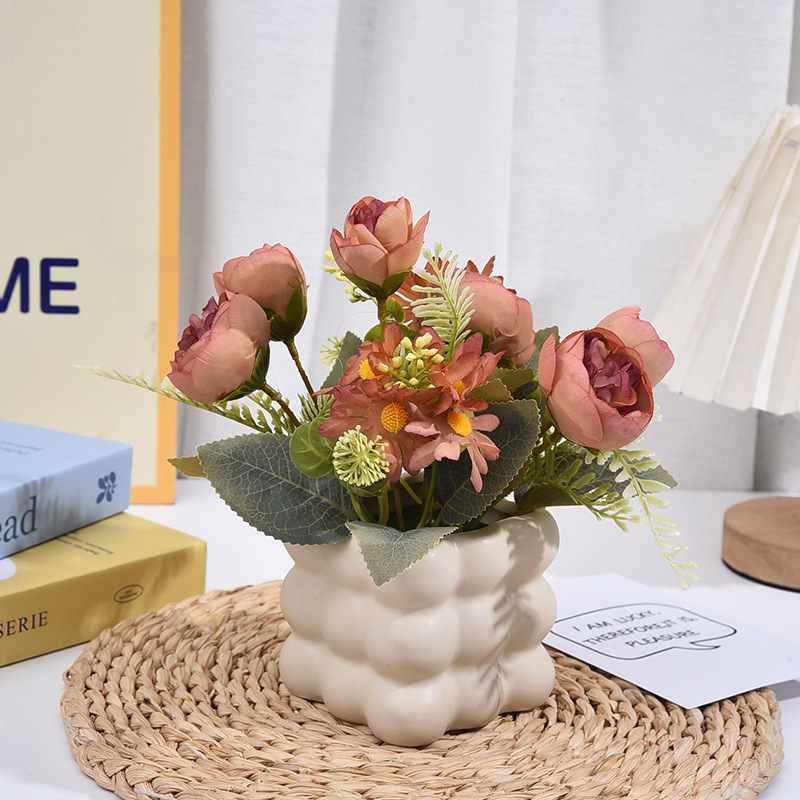 Factory wholesale ceramic pots Juanhua artificial flower potted home decorations living room office desktop flower ornaments