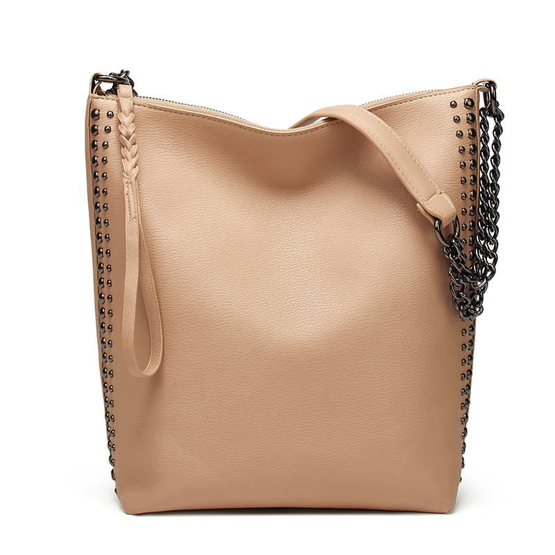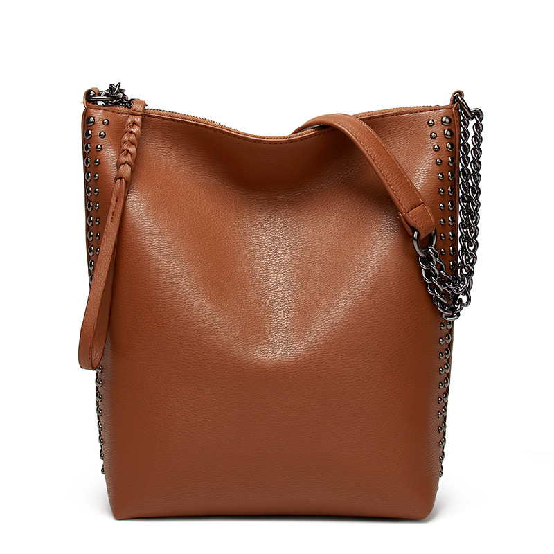 Fashion 2024 New Trendy Korean Rivet Bucket with Large Capacity Casual Versatile One Shoulder Diagonal Straddle Women's