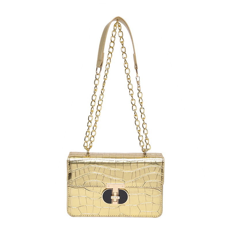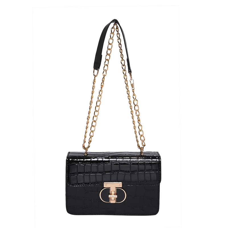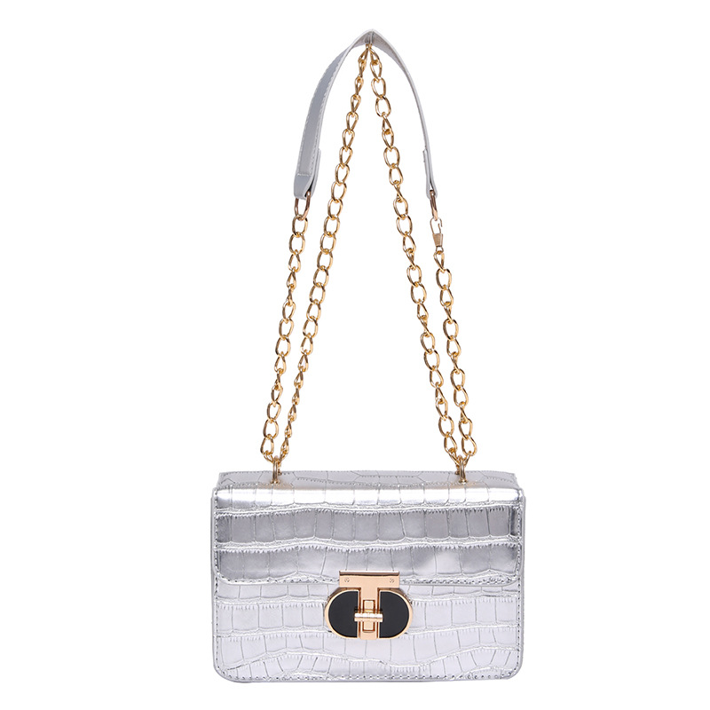 Fashion chain lock handbag 2024 new shiny stone pattern small square versatile and stylish single shoulder crossbody bag