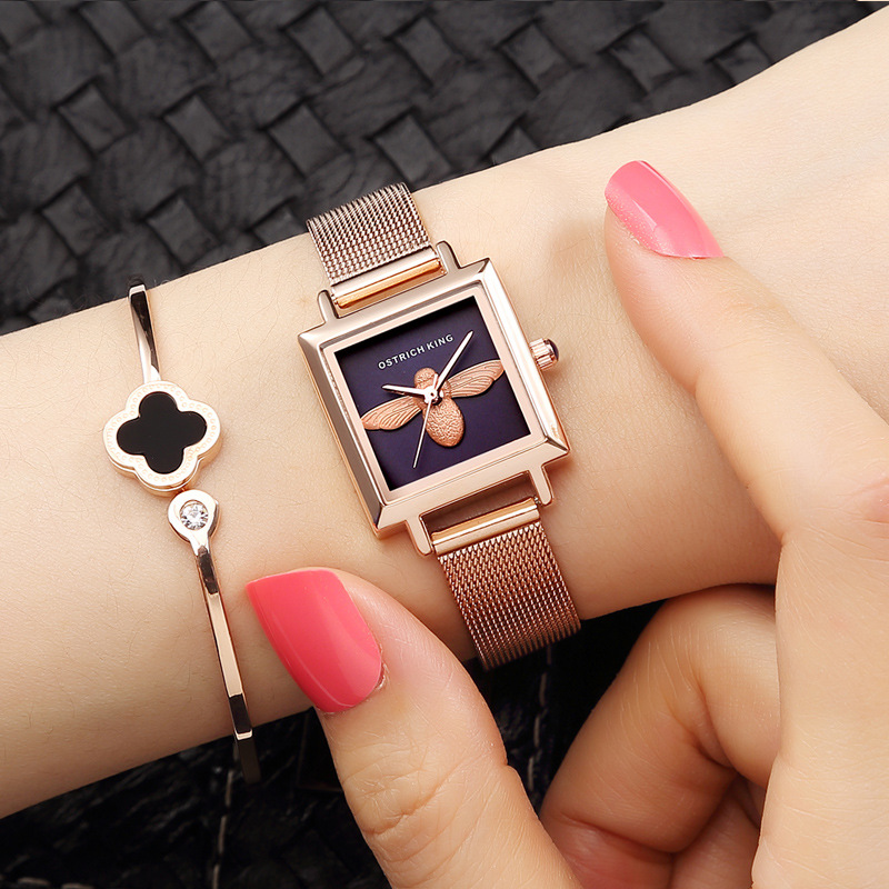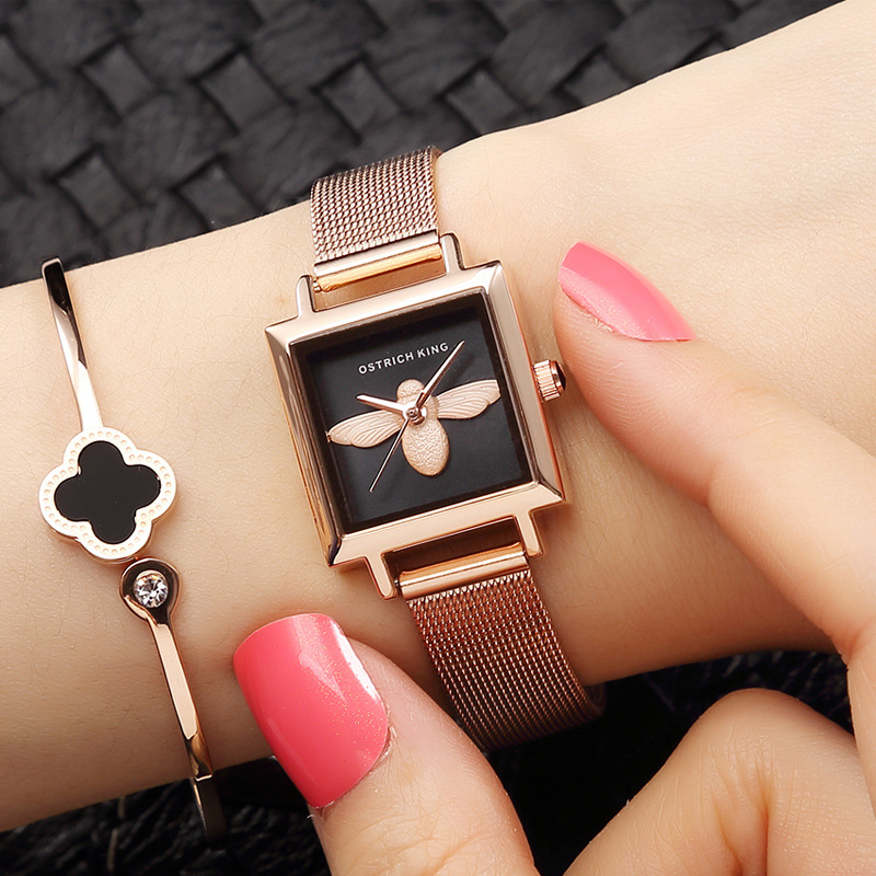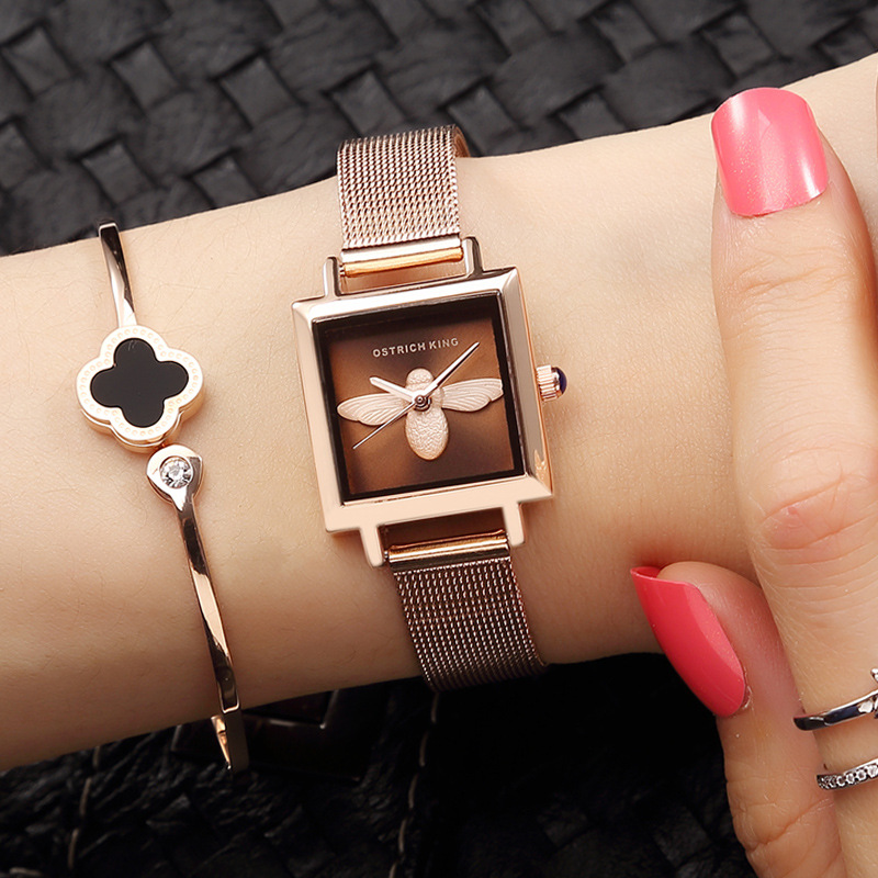 Fashionable Ladies Little Bee Watch Women's Square Bracelet Fashion Watch Small and Exquisite Women's Watch