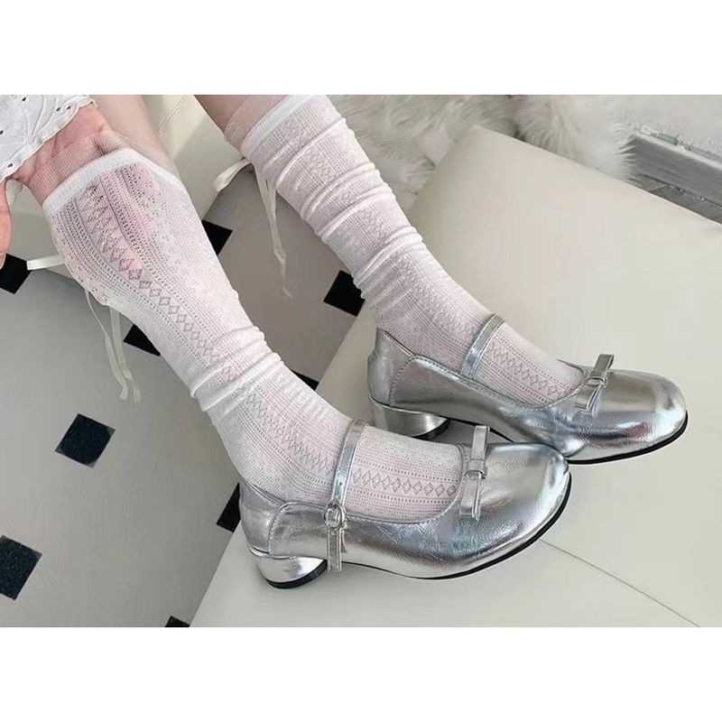 Hollow ballet style socks summer thin women's bow socks children's lace mesh calf pile socks women's spring and summer