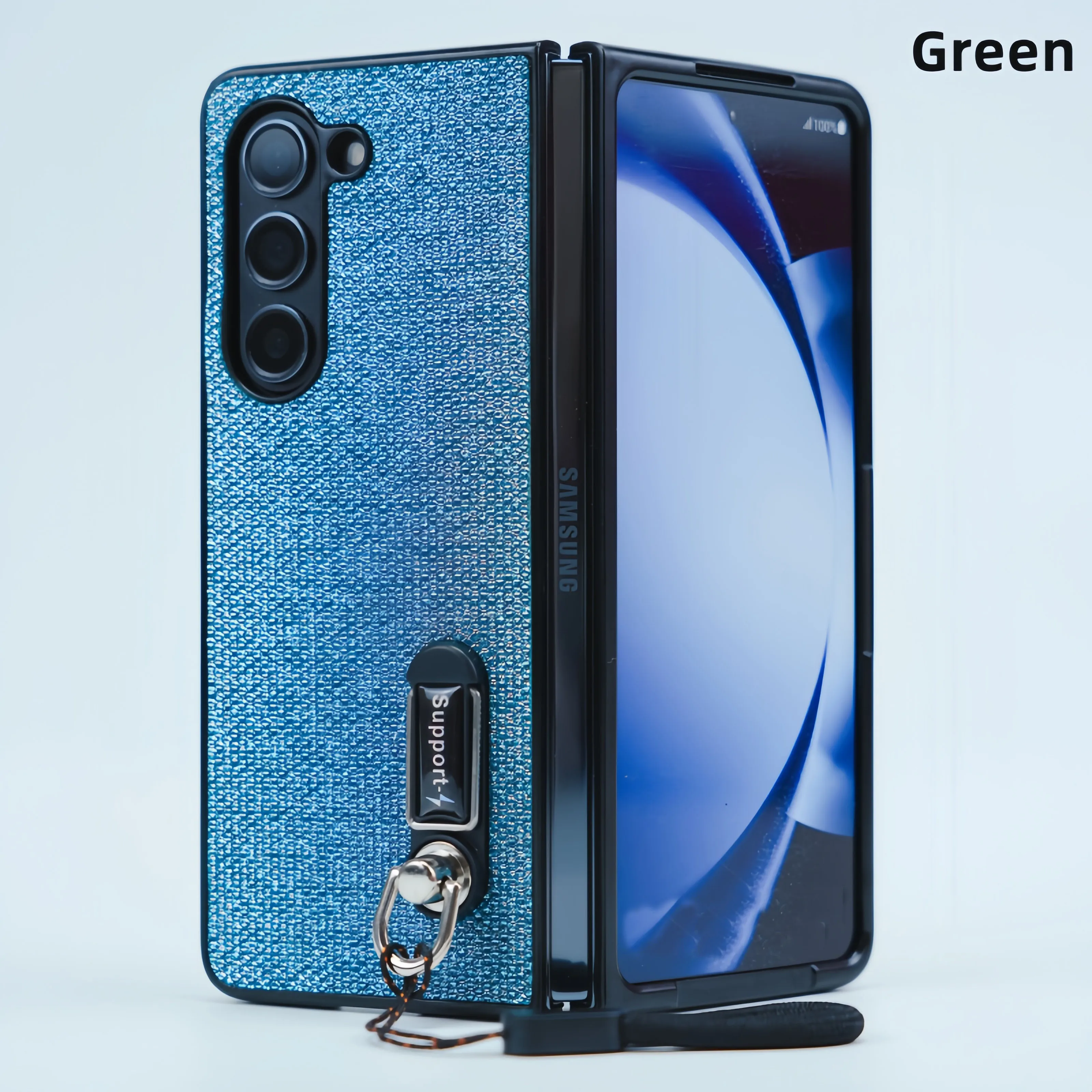 For Samsung Galaxy Fold 3 4 5 6 Luxury Wrist Hard Shell Plastic Shockproof Strap Bracket Phone Case Cover