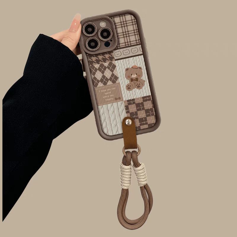 for Tecno Spark GO 2024 20 20C 10 10C 8C Infinix Smart 8 7 6 5 Note Hot 30 12 G96 2023 40i 40 30i Play Pro Plus Aesthetic Plaid Bear & Lanyard Case