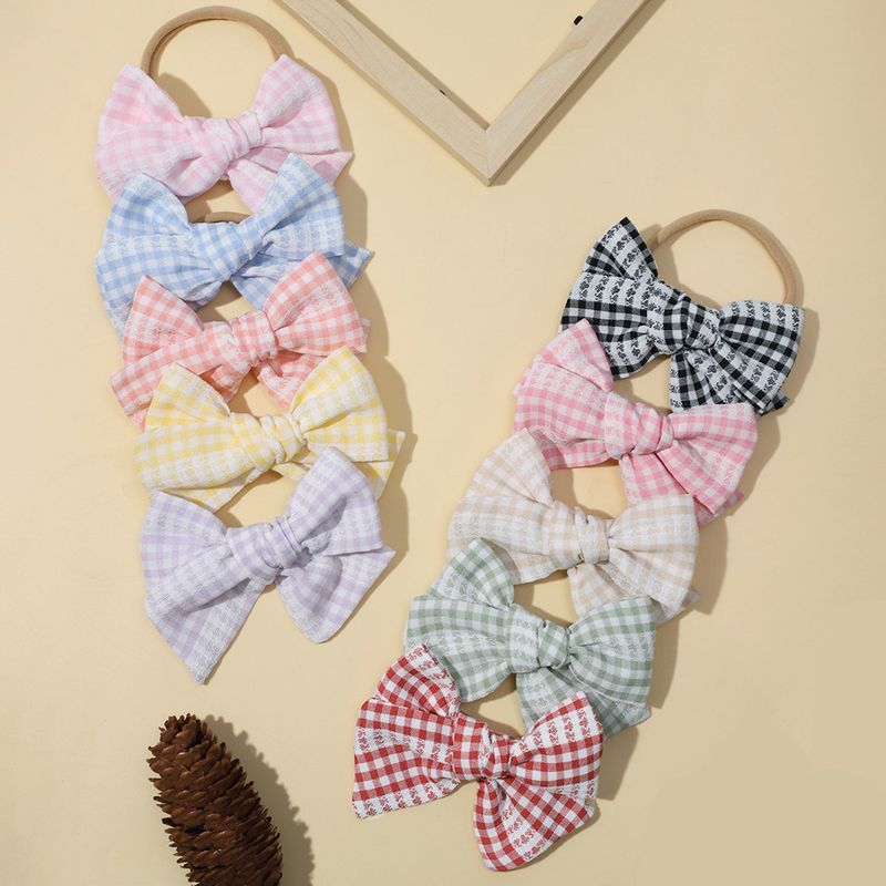 Foreign trade cross-border new children's hair accessories check bow baby fine hair band elastic nylon baby headband wholesale