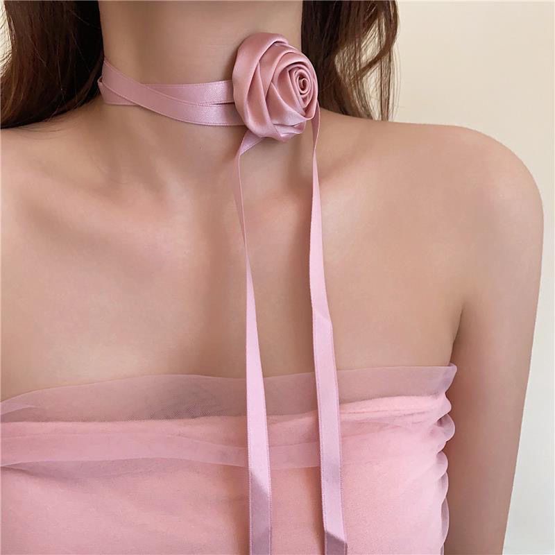 French Gentle Rose Strap Necklace With Niche Design, Choker Flower Collar, High-end Temperament, Collarbone Chain