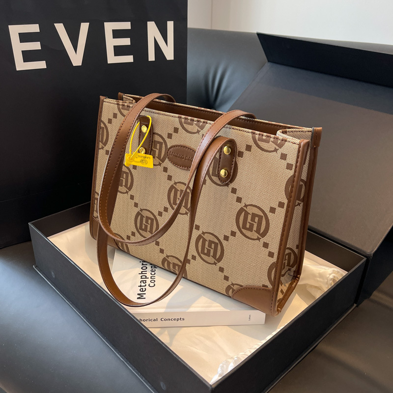 French Retro Handheld Bag for Women This Year's New Fashion Versatile Tote Bag with Large Capacity and Simple Embroidery Commuter Shoulder Bag
