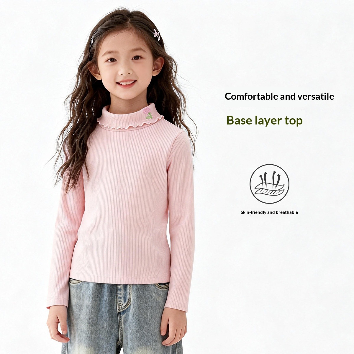 Girls' Mock Neck Long Sleeve T-Shirt 2026 Spring New Arrival Solid Base Layer Top For Toddler & Older Kids