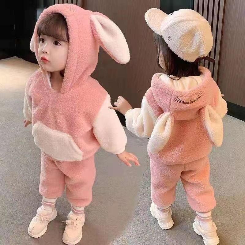 Girls' Suit Sports Girl Baby Winter Fashionable Children's Thickened Casual Plush Sweater Two Piece Set
