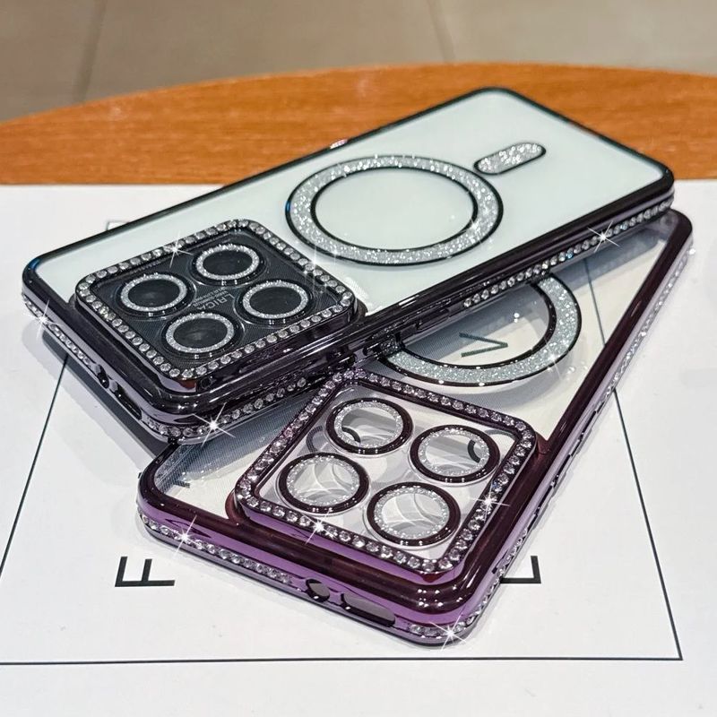 Glitter Rhinestone For Magsafe Magnetic Case For Xiaomi 14T Redmi Note 14 Pro + Plus Bling Dia Wireless Charge Cover