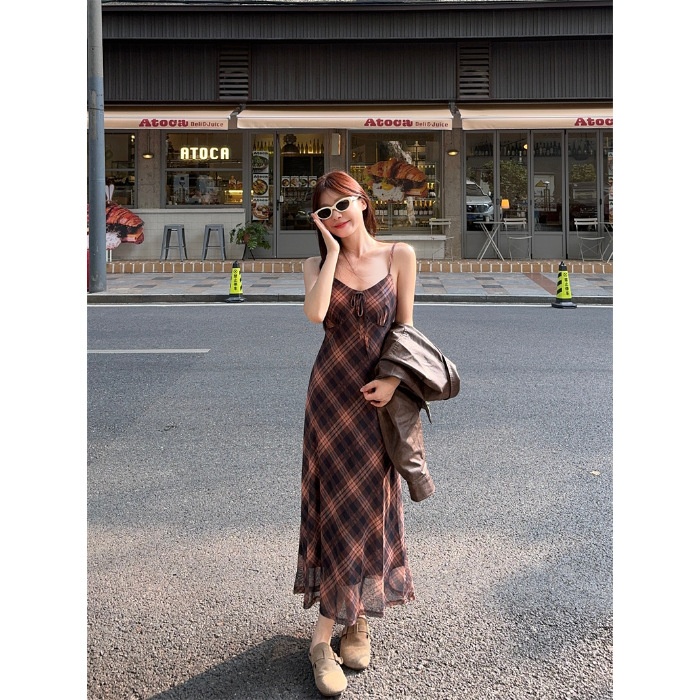 Fabric Name:Polyester,Pattern:Plaid Pattern,Craftsmanship:Collage/Assembly,Origin:Guangdong,Design:Strappy Design,Combination Form:Single item,Skirt Length:Long dress,Skirt Style:Suspender Dress,Collar Style:V-neckline,Sleeve Style:Sleeveless,Sleeve Length:Sleeveless,Waist Shape:High-waisted,Trendy Elements:Mesh Screen,Year/Season of Release:Spring 2025,Main fabric composition:Polyester Fiber,Main fabric material composition 2:Contact customer service,Item Number:SL-Easy Mail-8084,Brand:other,Color:brown,Size:S,M,L,XL,Style Type:Vintage Art Style,Front placket:No Buckle,Main fabric ingredient content:95% and above,Style:Vintage Style,Skirt Category:Dress,Cross-border Style Type:Elegant and graceful,Is it cross-border sourcing?:yes,Main Downstream Sales Regions 1:Southeast Asia,Main downstream sales regions 2:European and American