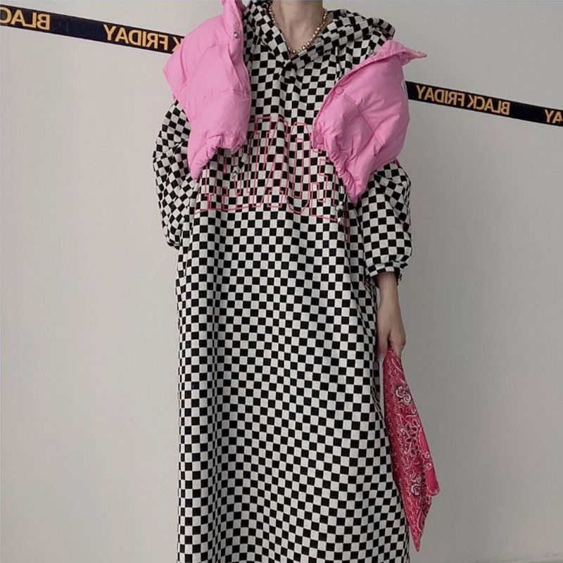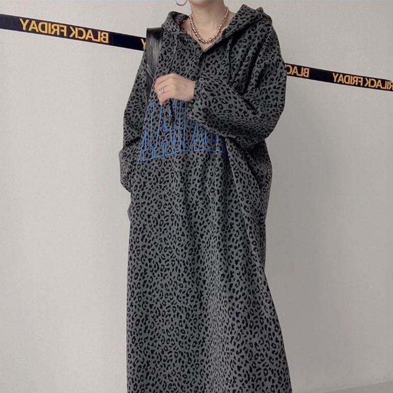 GraceChic Spring And Autumn 140kg Retro Letter Print Leopard Dress For Plus Size Women 150kg Loose Casual Top
