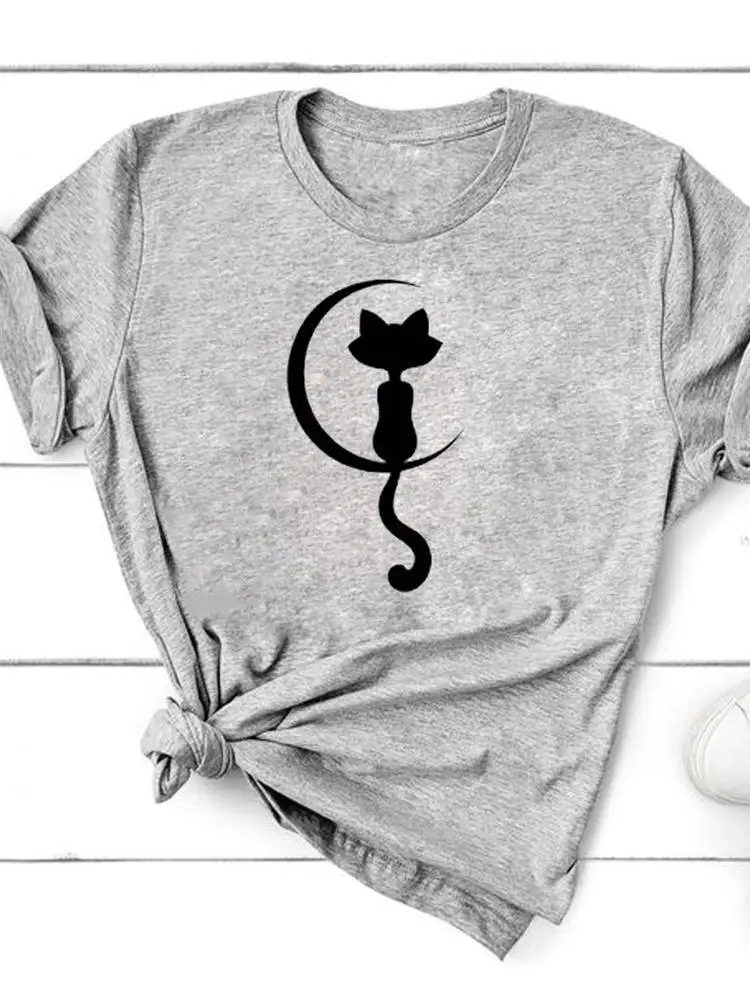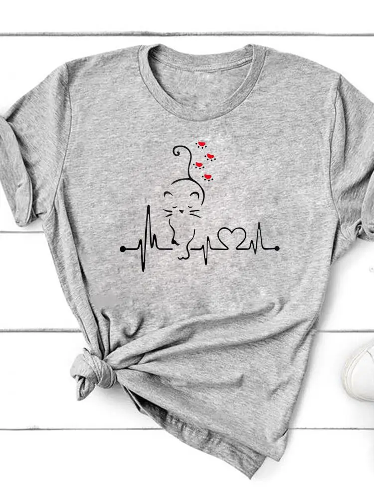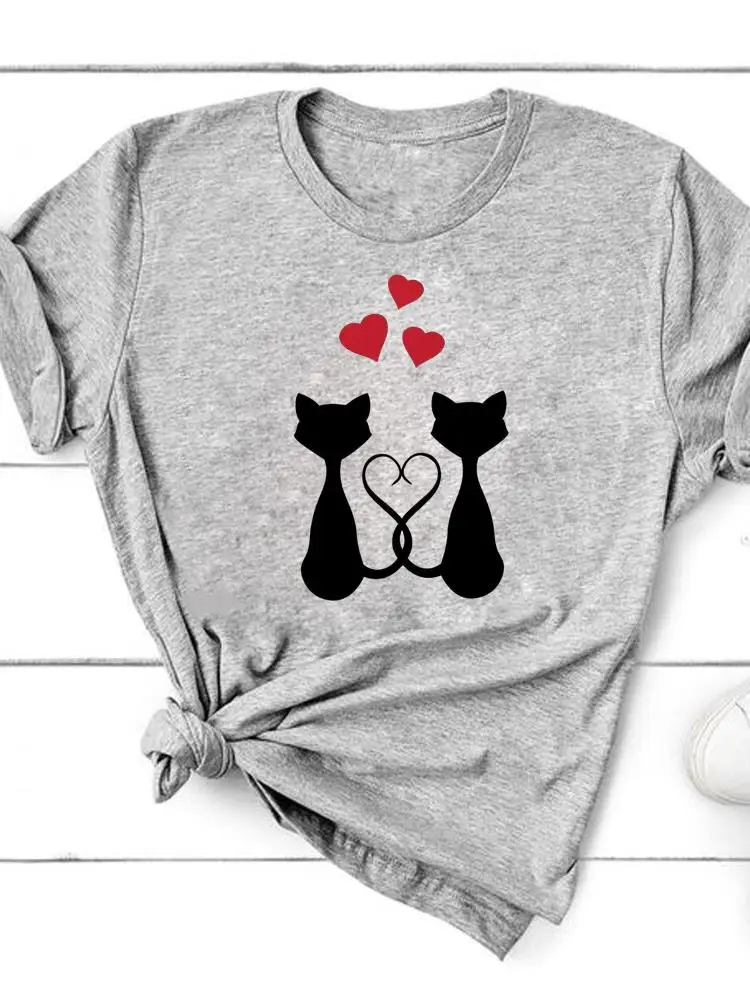Graphic T-shirt Clothing Summer Top Fashion Coffee Love Cat Funny Short Sleeve Women Print T Shirt Tee Basic Clothes586