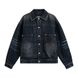 Green Button Decorated Denim For Men, Loose Fit, Street Style, Patchwork, Washed And Distressed, Autumn Jacket