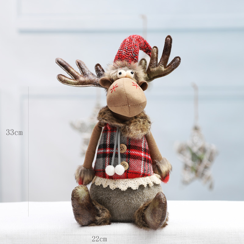 Handcrafted Plaid Christmas Reindeer Plush – Stretchable Santa’s Helper Decor For Store Displays, Tabletops & Festive Gift Exchanges
