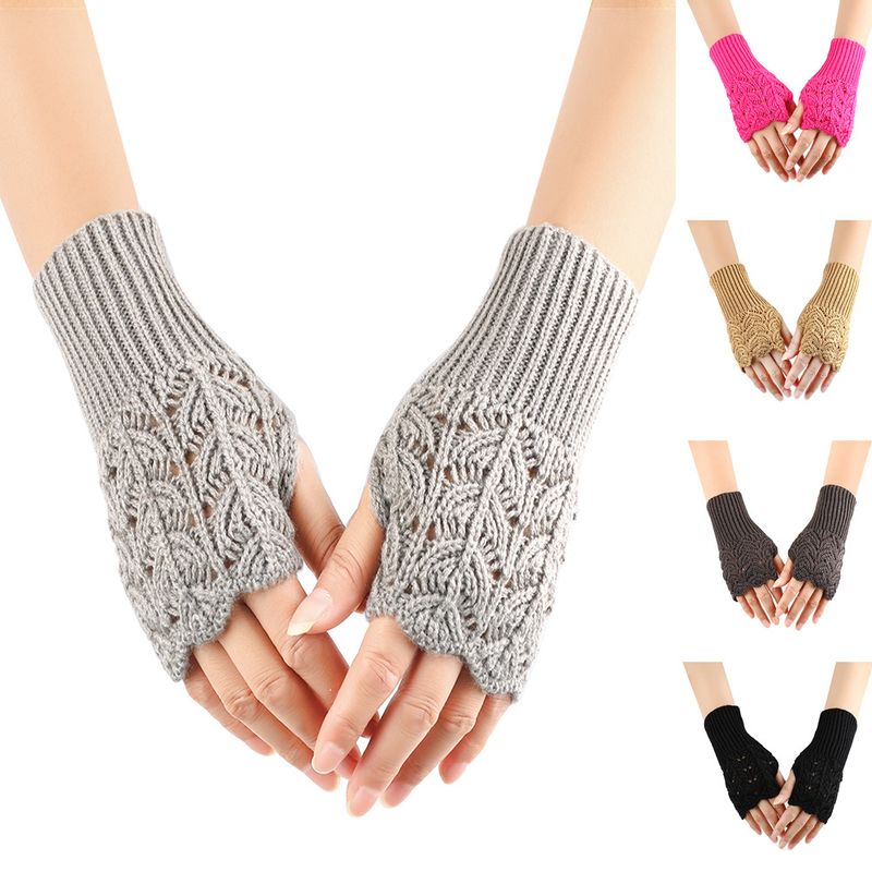 Heart-shaped Knitted Gloves Hollow Heart Design Autumn Winter Fingerless Arm Warmers Acrylic Gloves