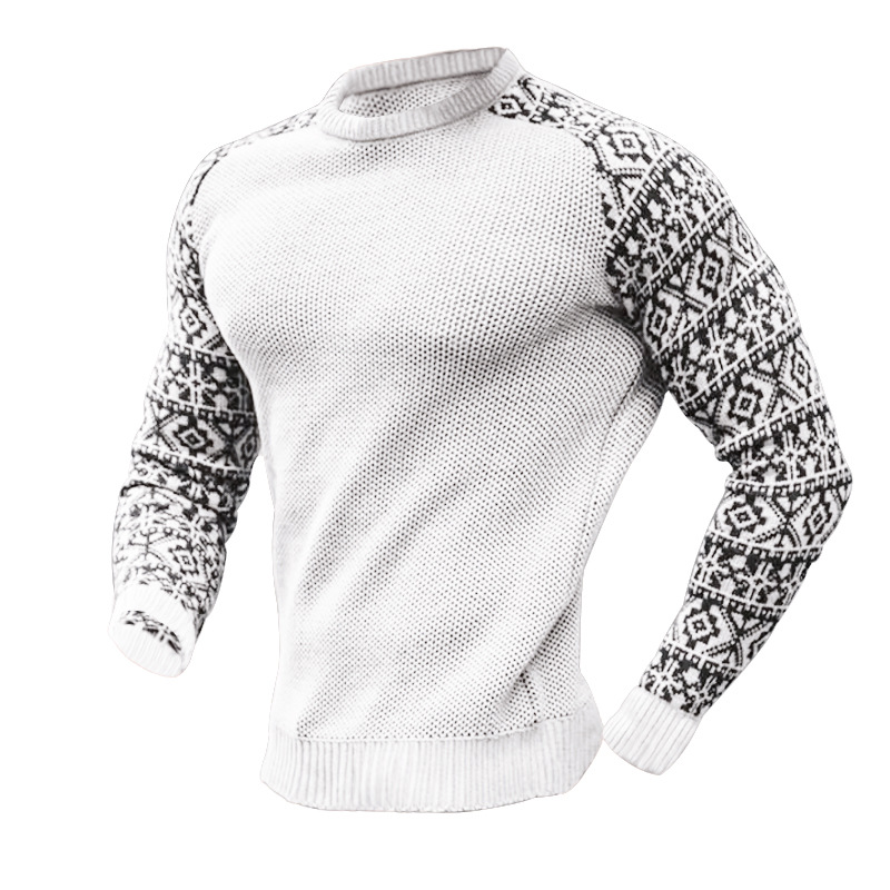 High-Quality 2023 Autumn New Waffle Print Men's Pullover Base Layer Color Block Knit Sweater