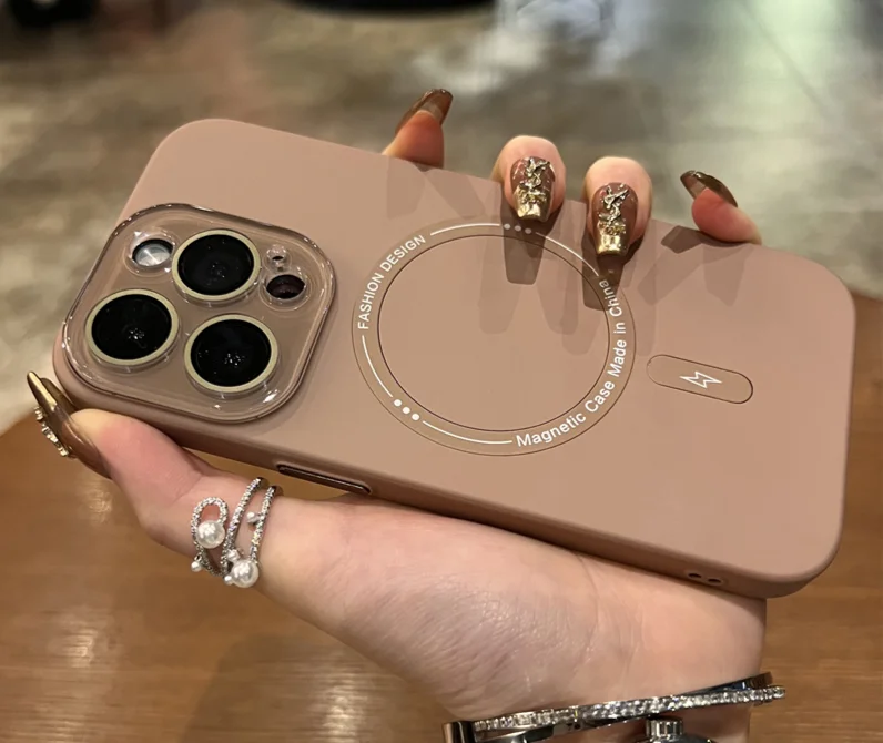 【 High quality 】 Brown magnetic suction with built-in lens film iphone 15promax phone case 15 new iPhone 15promax cover 13 anti drop 14 silicone 12 male 11