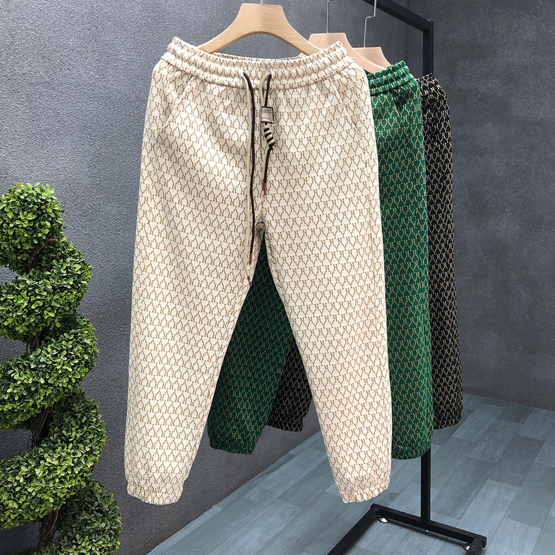 High quality letter printed pants, men's trendy casual pants with bound legs, 2023 autumn new men's cropped pants