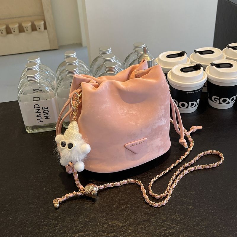 High-Quality Texture 2024 New Women's Chain Crossbody Niche Drawstring Stylish Bucket Bag