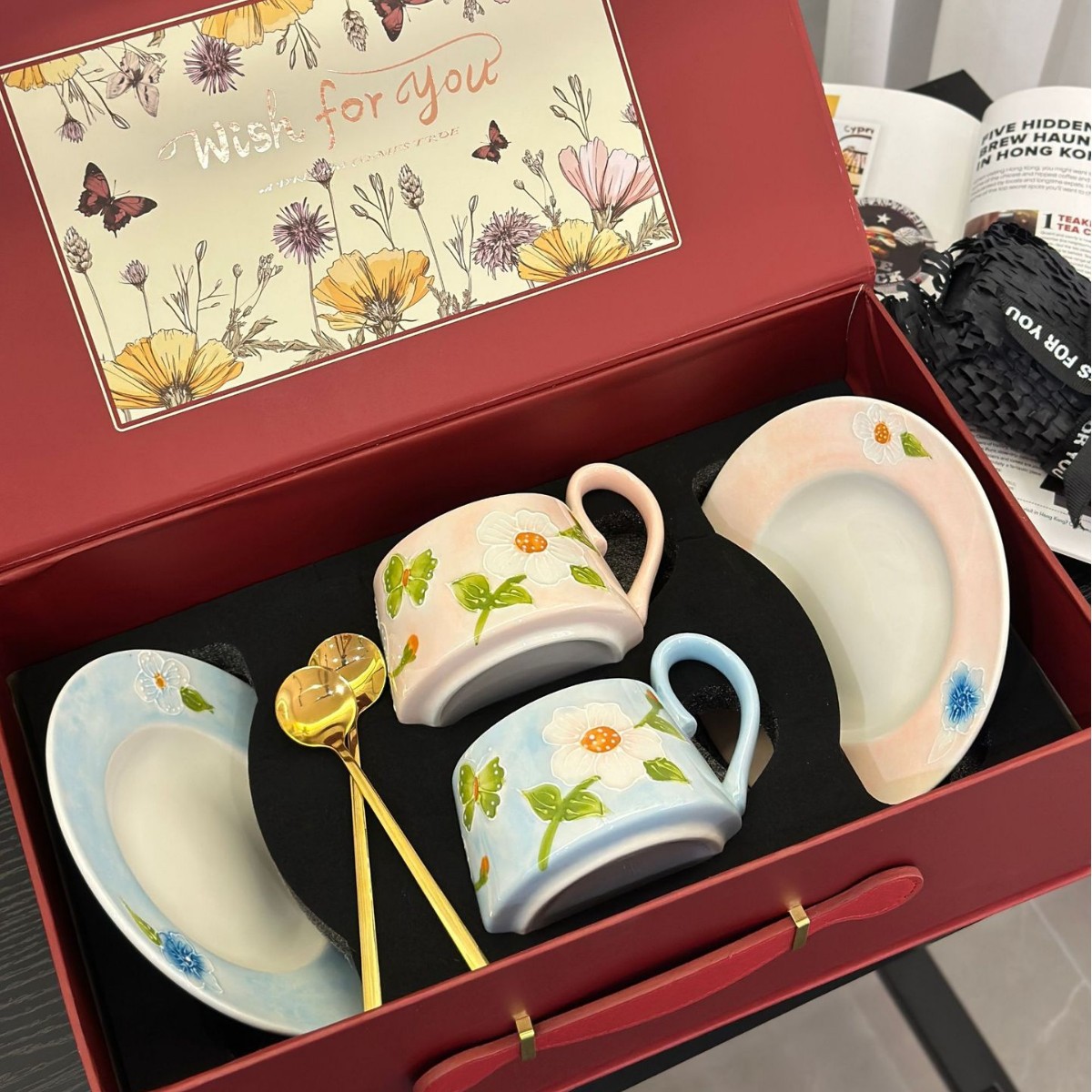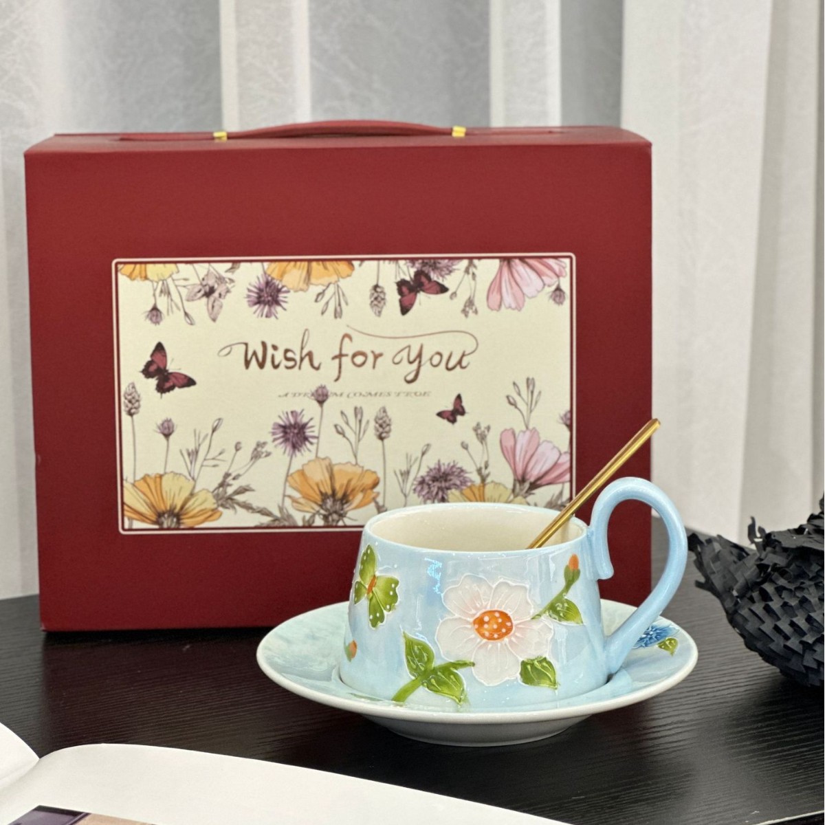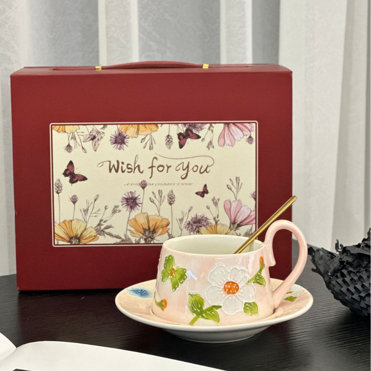 High Value Hand Painted Embossed Floral Cup And Saucer Set Breakfast Cup Ceramic Cup Coffee Cup Teacher's Day And Chinese Valentine's Day Gift