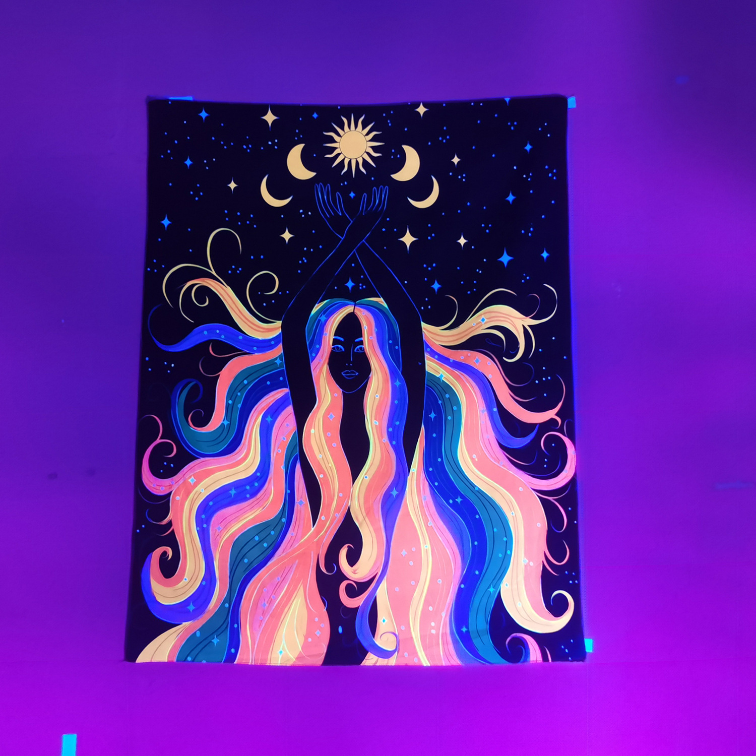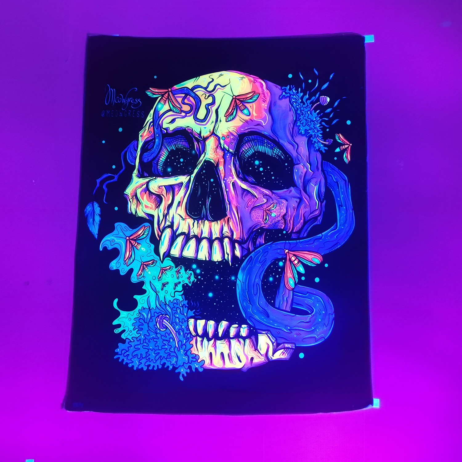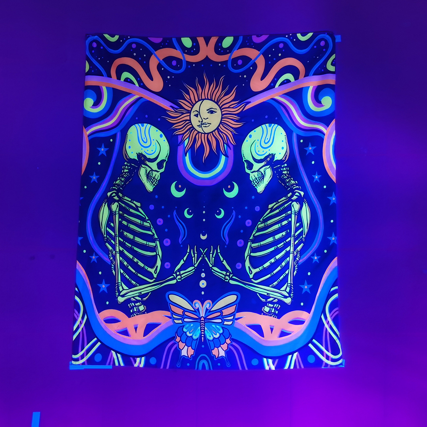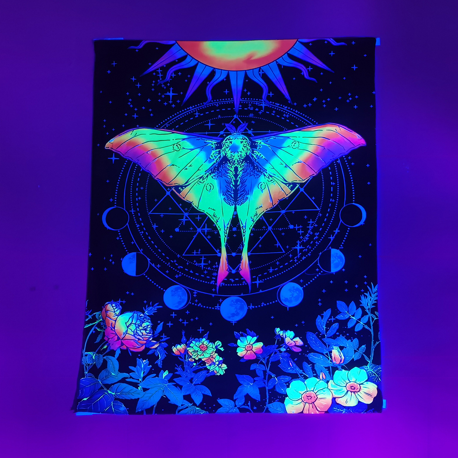 Home tapestry Fluorescent UV light psychedelic Datura background decorative cloth Wall hanging cloth Psilocybin mushroom