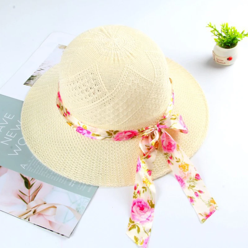 Hot Sale Summer Bowknot Ribbon Outdoor Girls Wide Brim Straw Hat Ladies Panama Protection Hats For Women Sun Caps New