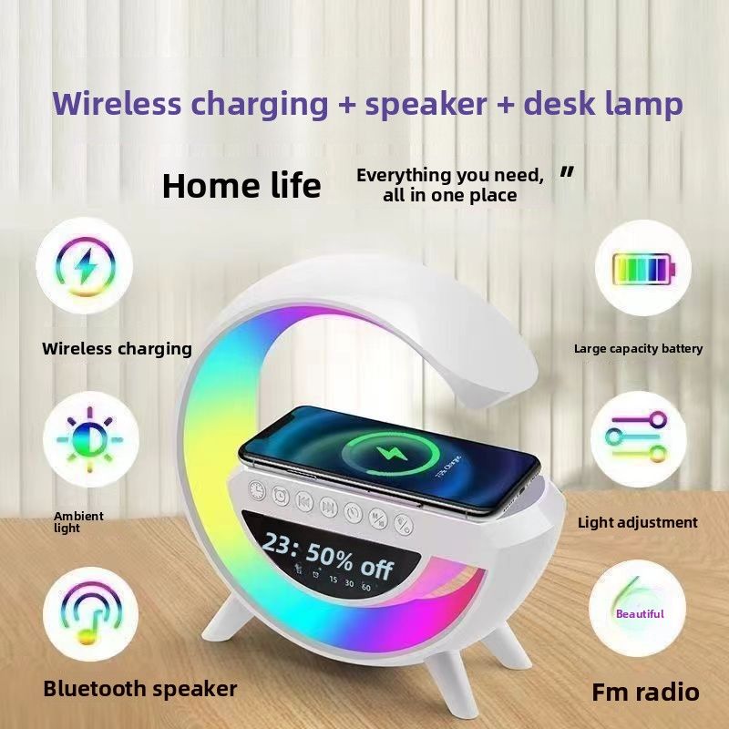 Hot-Selling Creative Gift BT3401 Colorful Atmosphere Light Wireless Charging Multi-Functional Smart Bluetooth Speaker