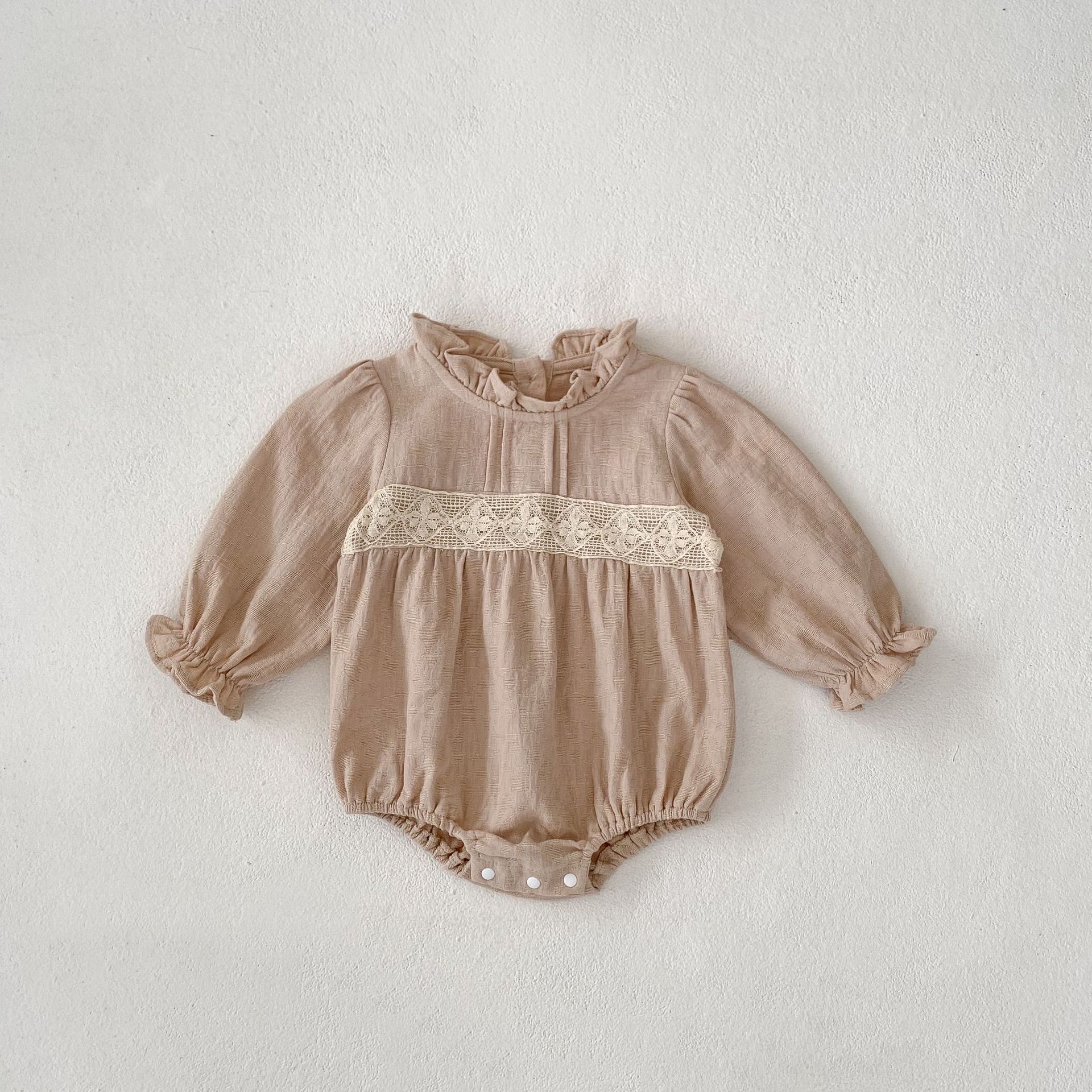 Ins2024 Autumn All Cotton New Girl Baby Long Sleeve Ha Yi Black Ear Collar Triangle Bag fart Crawler Clothes