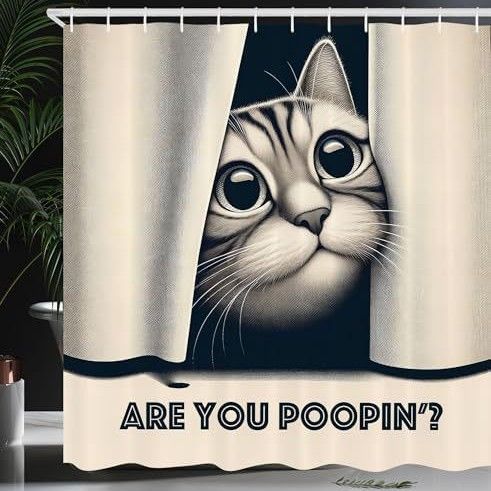 Interesting Shower Cat Cheese Feast Cartoon Anime Curtain, Bathroom Blocking Decoration Partition, No Drilling Required