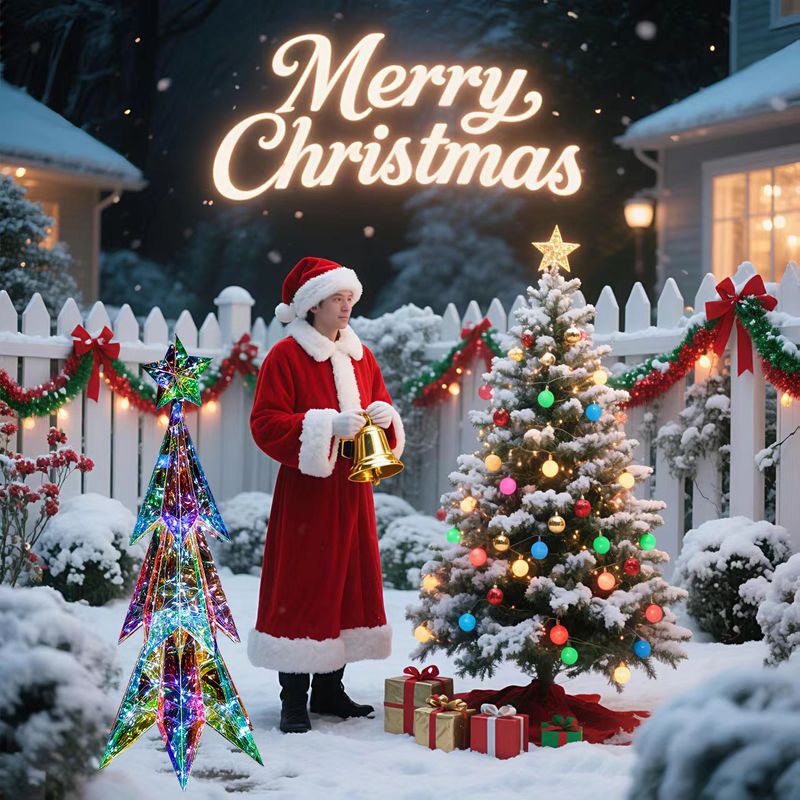 Iridescent Pointed Leaf Christmas Tree Colorful LED Lights Party Decoration Winter Gift