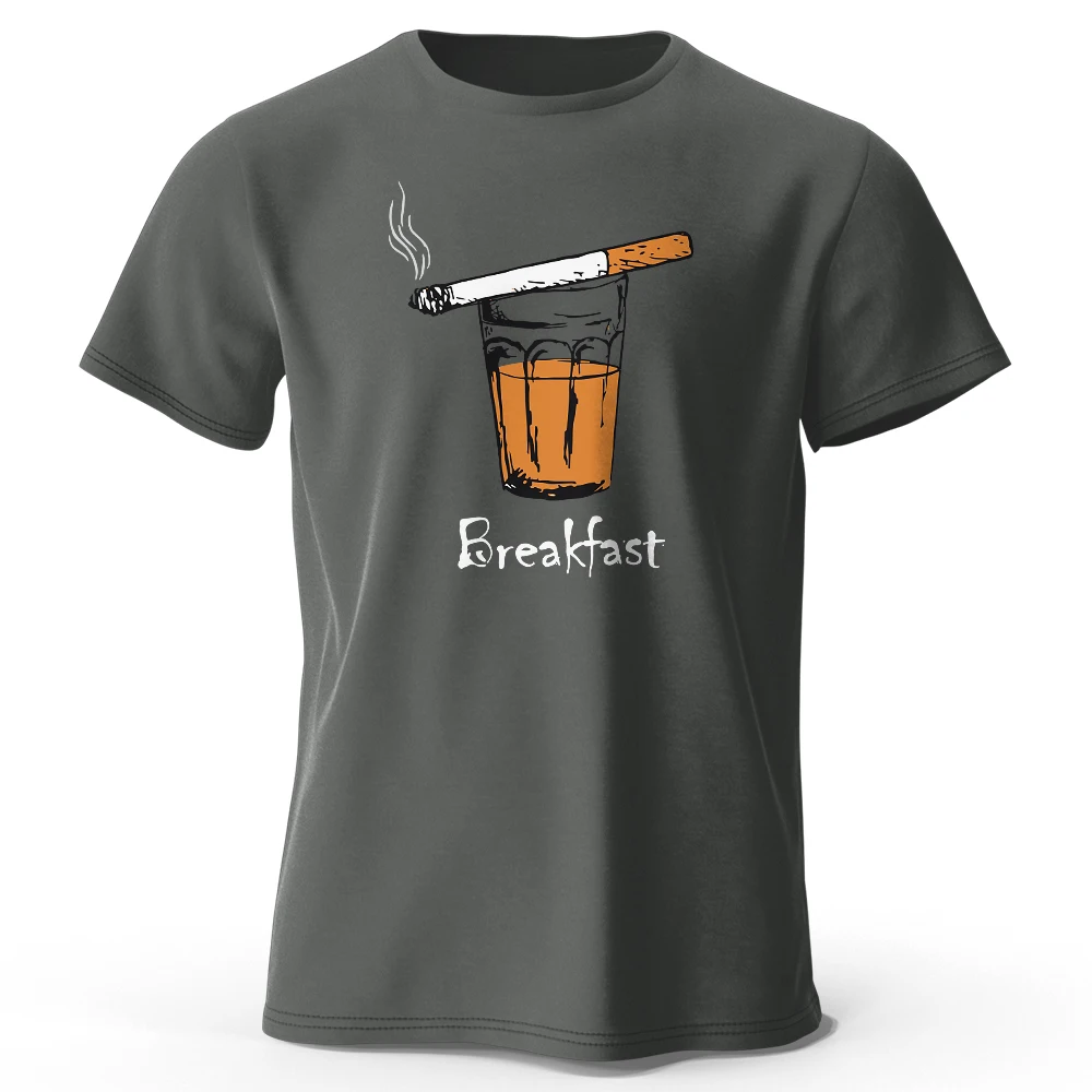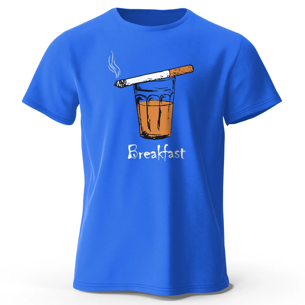 Joke The Breakfast Printed Men's T-Shirt 100% Cotton Oversized Funny Graphic Tees for Men Summer Tops