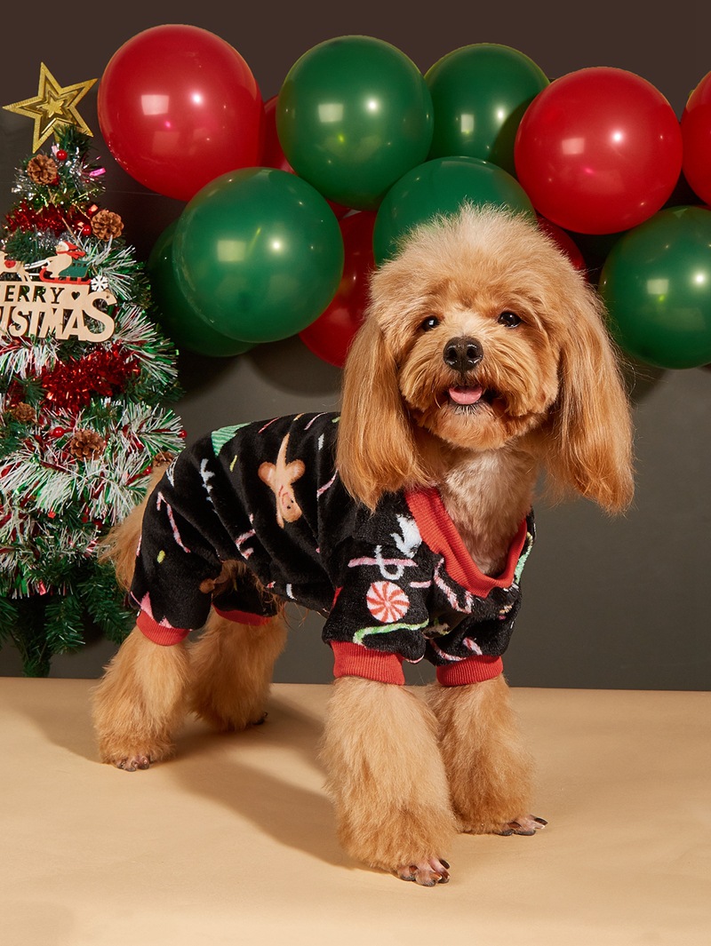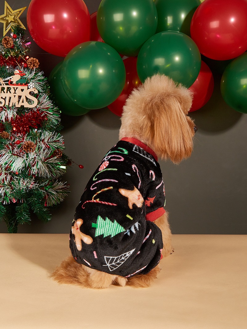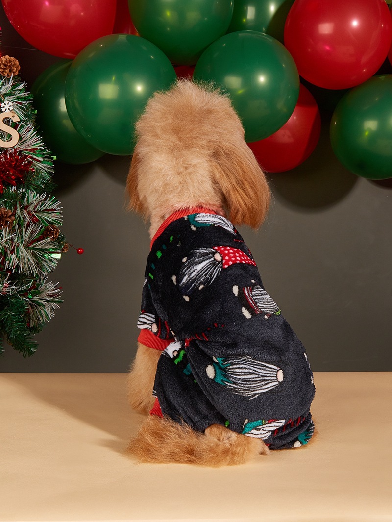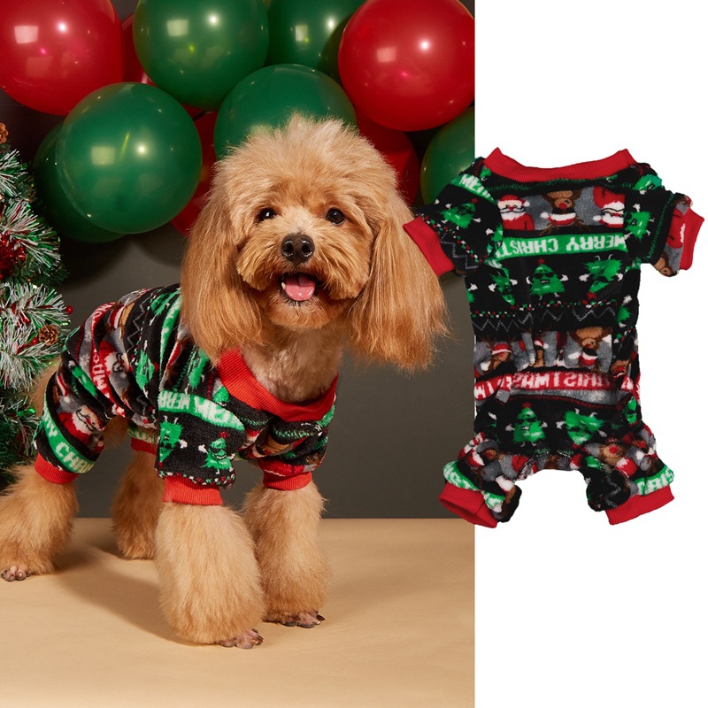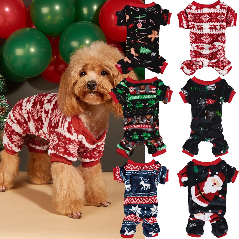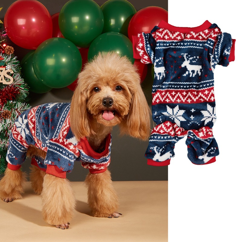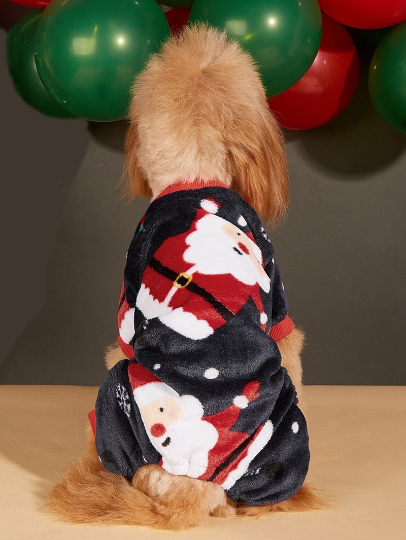Christmas dog hat coral velvet round neck pullover Christmas dog four-legged fleece coat