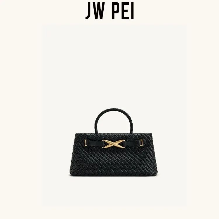 JW PEI'S Woven Top-Handle Bag | Black Vegan Leather With Gold Hardware | Sustainable & Durable For Daily Use