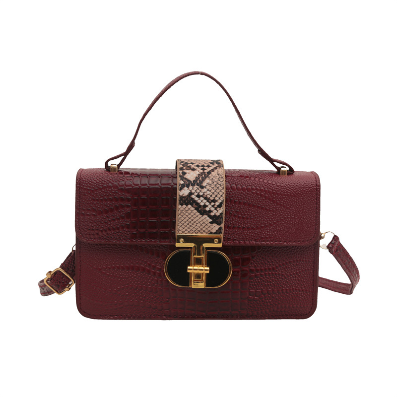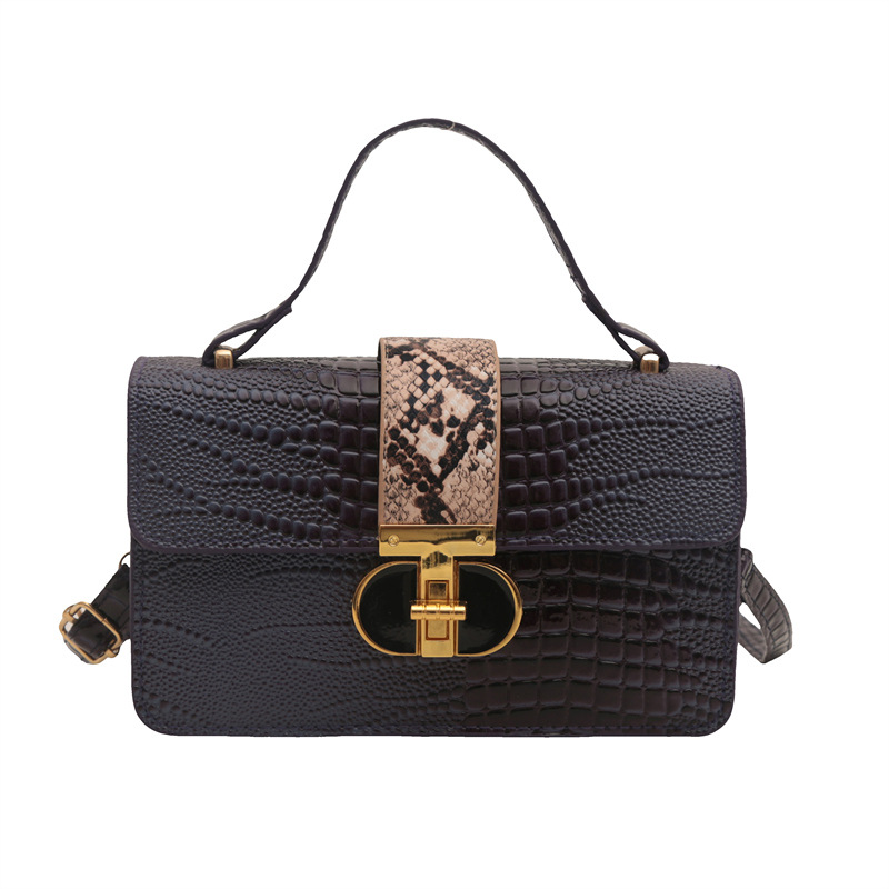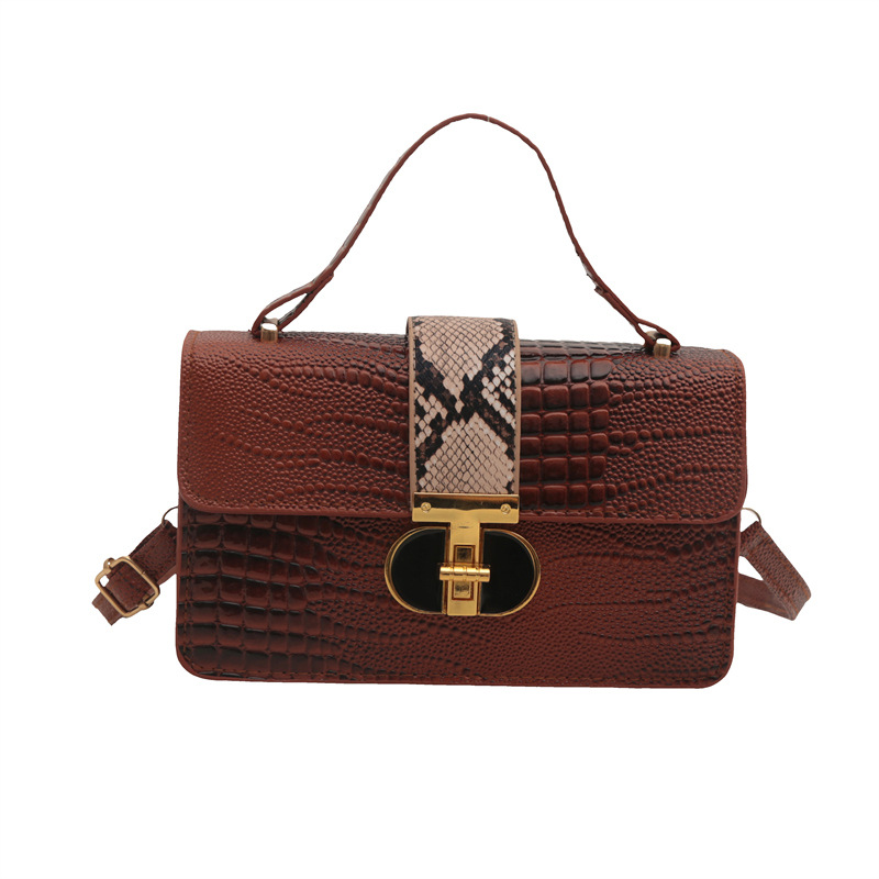 Korean casual fashion handbag 2024 new simple crocodile pattern single shoulder crossbody small square bag