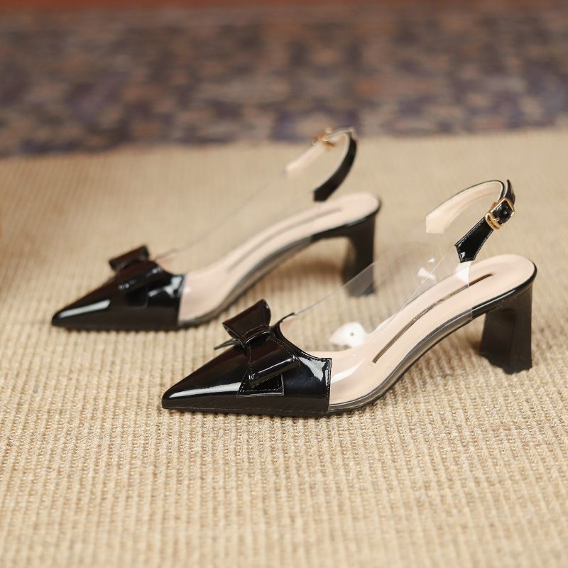 Korean Pointed Head High-heeled Closed-toe Sandals Bow Shallow Mouth High-heeled Women's Summer Cool Backless Single Shoes Exquisite Generous