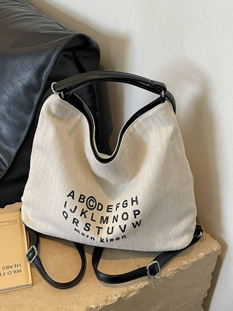Korean-style Casual Letter-printed Large-capacity Canvas Bag, New Unique Tote, With A Minimalist Design That Can Also Be Used As A Backpack.