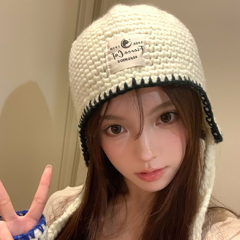 Korean-style warm tasseled knit beret, suitable for women, a three-piece set of multifunctional wool hats