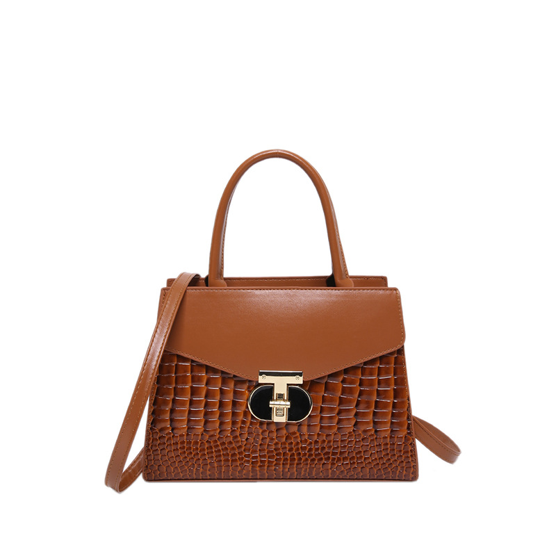 Korean Women's 2024 New Crocodile Pattern Single Shoulder Crossbody Fashion Handheld Small Square Bag