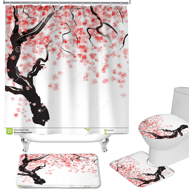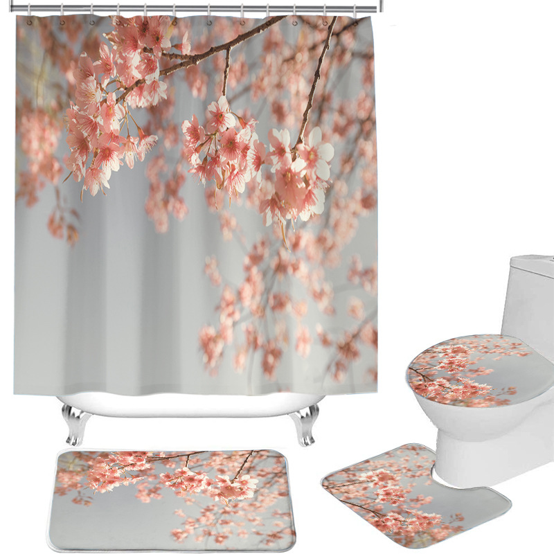 Creative digital printed shower curtain, shower curtain, plum blossom bathroom, Nordic style INS