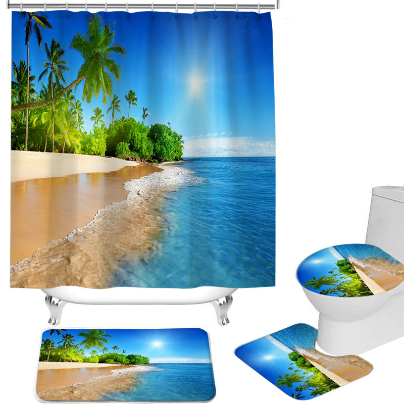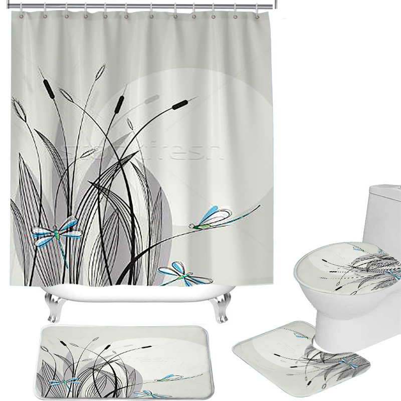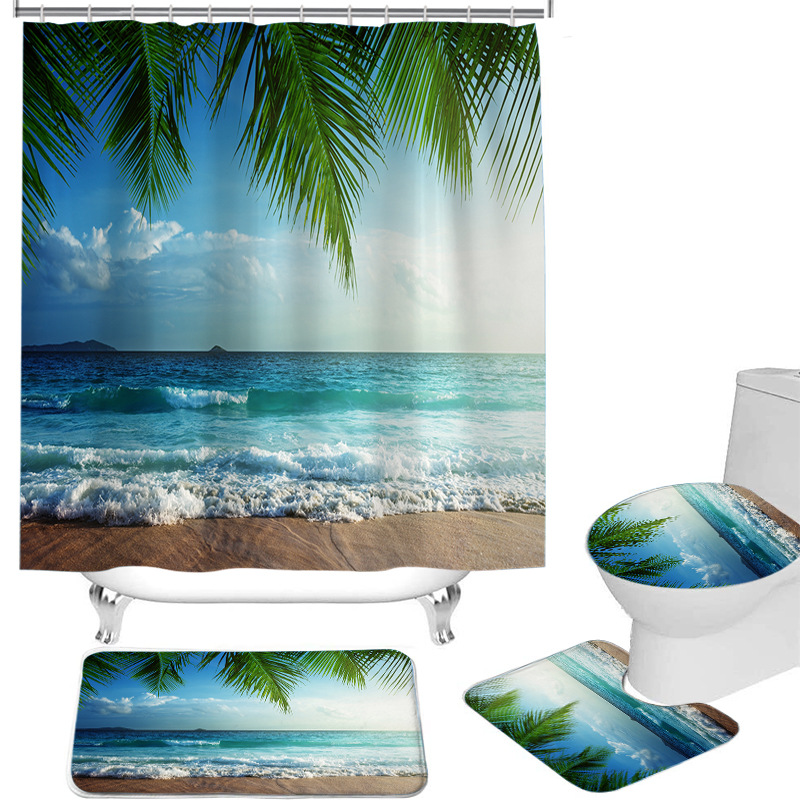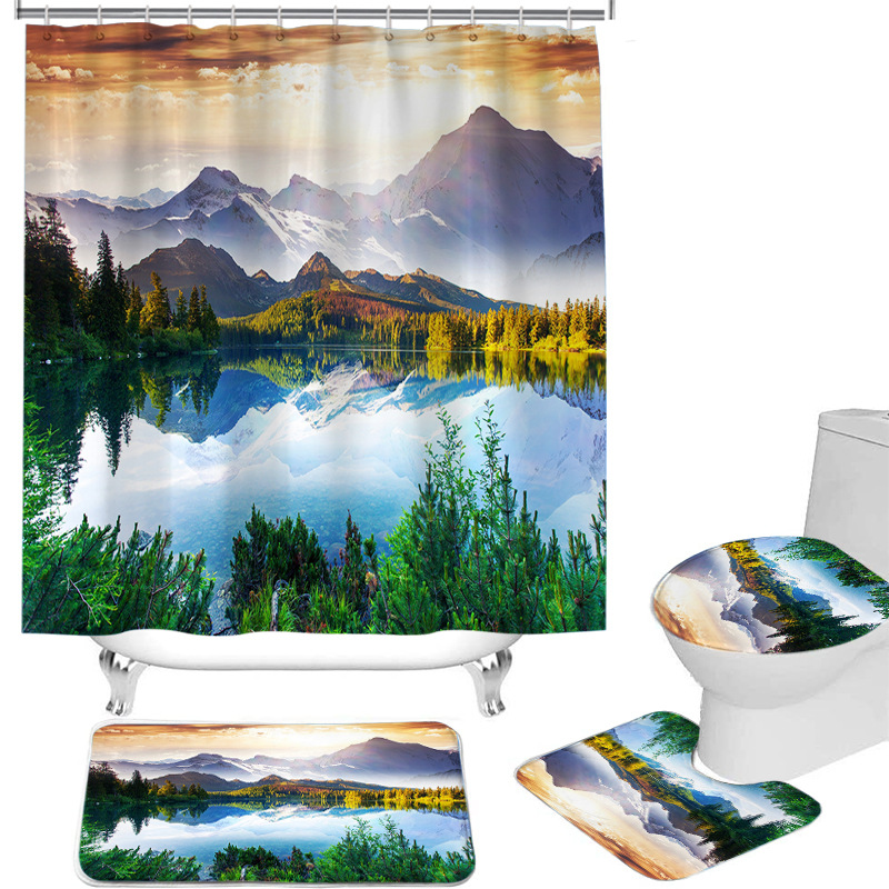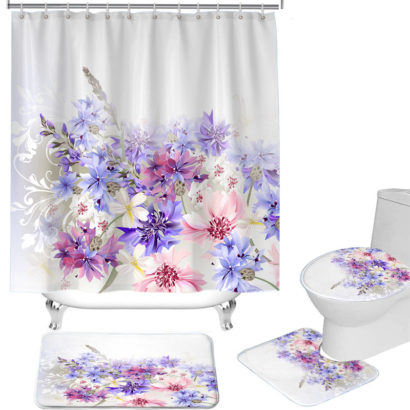 Three piece shower curtain set (180 * 180+U-shaped 45 * 40+cover)